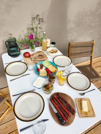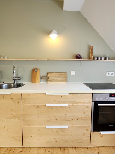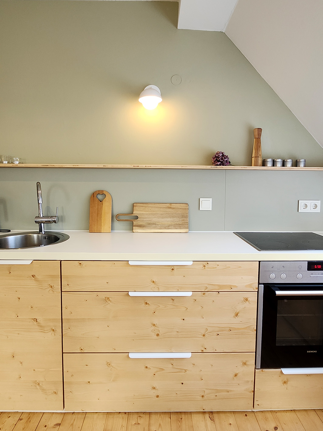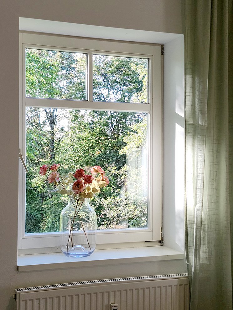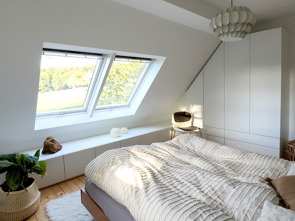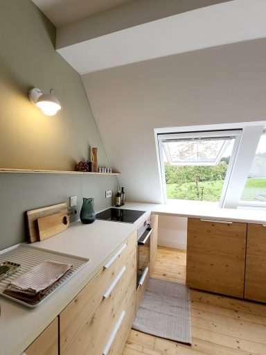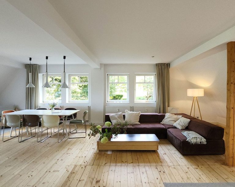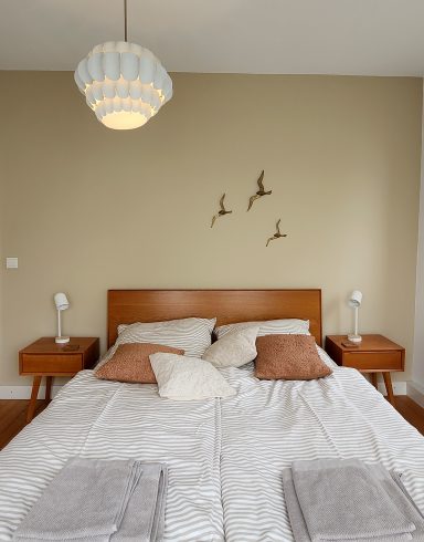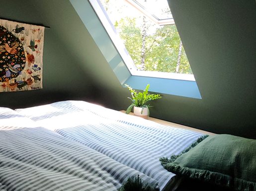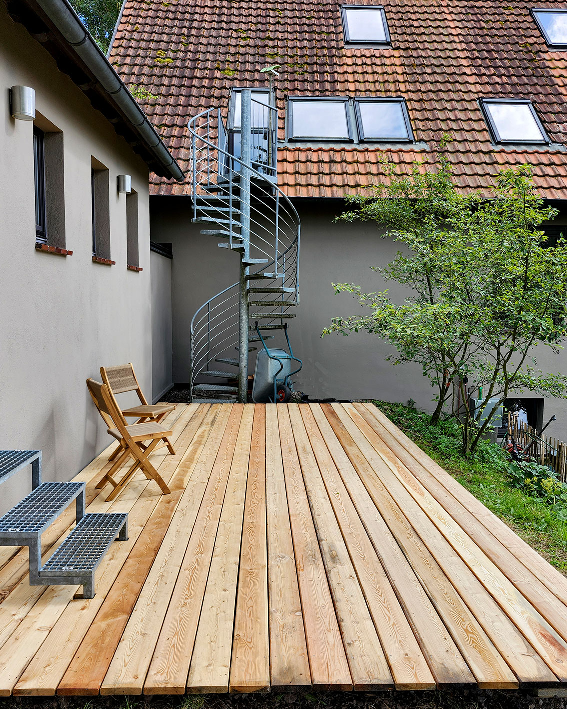 Durch die vielen Fenster öffnet sich der Blick in die Natur und schafft lichtdurchflutete Innenräume. Die ehemalige Lehrer-Wohnung wurde in eine Wohnung mit 3 Schlafräumen und 2 Bädern umgestaltet mit großzügigem Wohnraum, offener Küche und Essbereich. Er bietet den Wohlfühl-Raum für einen Urlaub mit den Liebsten. Über eine Wendeltreppe gelangt man zur privaten Holz-Terrasse, die übergeht in den Naturgarten und die unberührte Natur. Ein Ort um zur Ruhe zu kommen und die Seele baumeln zu lassen.